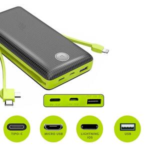 - suporte de saída 2.0 max 5v 2.4a. - ambas as saídas usb compatíveis para qualquer aparelho celular. - suporte de entrada micro-usb quick charge 2.0. - relâmpago e suporte de entrada tipo c max 5v 2a.