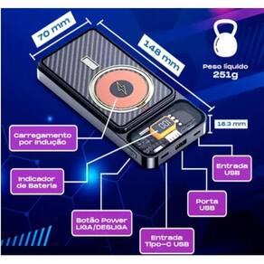 Com uma capacidade de 10.000 mAh, este carregador portátil garante que você tenha energia suficiente para manter seus aparelhos sempre prontos para uso, seja em casa, no trabalho ou em viagens.