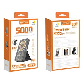 O Power Bank Magnético Hrebos HS-940 de 5.000mAh representa a liberdade definitiva no carregamento móvel, unindo a conveniência da tecnologia por indução com a firmeza da fixação magnética. Desenvolvido para usuários que buscam praticidade e minimalismo, este carregador portátil elimina a necessidade de cabos pendurados enquanto você utiliza seu dispositivo. Com a tecnologia MagSafe integrada, o HS-940 acopla-se magneticamente com precisão à traseira de iPhones (do modelo 12 em diante) e smartphones Android compatíveis, garantindo que o carregamento sem fio ocorra sem interrupções, mesmo enquanto você movimenta o aparelho ou o guarda no bolso.