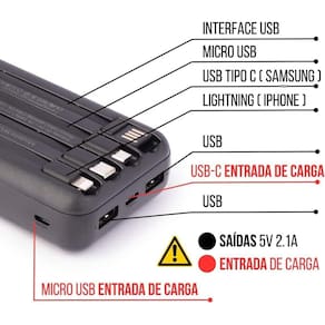 Carregamento seguro com proteção contra sobrecarga, corrente curta e superaquecimento. Carregamento sem fio por indução.Tipo