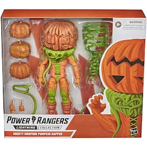 Esta figura monstruosa Lightning Collection Pumpkin Rapper de 8 polegadas apresenta pintura premium e detalhes decorativos inspirados no show, mais de 20 pontos de articulação para alta posebilidade, inclui acessórios de abóbora, acessório de tentáculo de videira, acessório de efeito power blast e um par extra de mãos para mais maneiras de jogar ou exibir. Go Go Power Rangers!