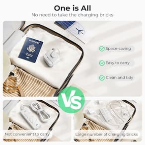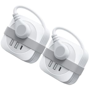 - Régua de alimentação 5 em 1 com portas USB?Este filtro de linha compacto possui 2 tomadas CA (10A/125V/1250W) e 3 portas USB A (total de 15,5 W). Saídas CA espaçadas e portas USB de carregamento inteligente simplificam viagens e trabalho, eliminando adaptadores volumosos para uma experiência sem desconforto