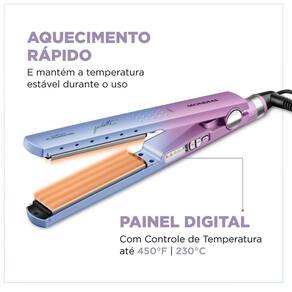 - PAINEL DIGITAL COM CONTROLE DE TEMPERATURA: São 5 opções de 150C a 230C, para um alisamento perfeito e adequado aos diferentes tipos de cabelo.