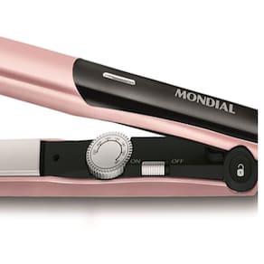 Prancha Alisadora Golden Rose Mondial P-20 Cerâmica E Tourma patin flutuante com revestimento cerâmico, cabo giratório, controle de temperatura de 100 C à 220 C e trava de segurança. Tensão / Voltagem - Bivolt Potência Máxima - 45 Níveis de Temperatura - 220 Cor Golden - Rose Dimensões do produto - 8,3 x 33,1 x 5 Alimentação - Eletricidade Garantia do Produto - 12 - Meses Peso do produto - 0,384 ACESSÓRIOS INCLUSOS Prancha - Sim Certificado de Garantia - Sim RECURSOS Cabo Giratório - Sim Com Fio - Sim Alisa - Sim Registro Inmetro 0040/2013 Ean: 7899882304756