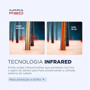 A Prancha Alisadora Infrared P-01-IR da Mondial é a escolha perfeita para quem busca um liso impecável sem abrir mão da saúde capilar. Seu grande diferencial é a Tecnologia Infrared, que emite ondas infravermelhas que penetram nos fios e agem de dentro para fora, acelerando a modelagem e preservando a camada externa do cabelo, evitando o ressecamento.