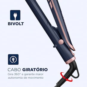 Com um design sofisticado nas cores azul e golden rose, ela oferece total praticidade com o bivolt automático e um cabo giratório de 1,8 metros, garantindo liberdade de movimento durante o uso. É a tecnologia de salão levada diretamente para a sua rotina de beleza.