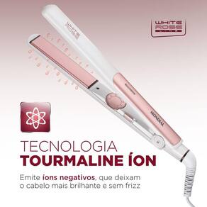 Cabelos com um liso mais saudável e cheios de brilho! A Chapinha White Rose P-50 da Mondial tem revestimento cerâmico e com a tecnologia Tourmaline Íon, que cuida da saúde das mechas. Ao ser aquecido, o mineral Tourmaline libera íons, que fecham as cutículas dos fios, deixando as mechas mais macias, brilhantes e sem frizz. Além disso, o item chega a 220, tem cabo 360 e é Bivolt.