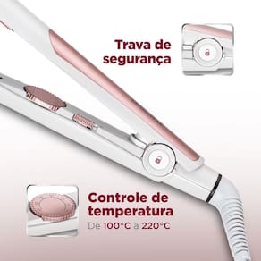 - CONTROLE DE TEMPERATURA: A prancha alisa perfeitamente todos os tipos de cabelo e chega a 220C.
