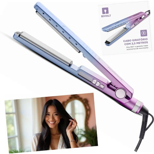 - Design moderno e elegante- Revestimento com Qu4tro Elementos- Controle digital de temperatura- Aquecimento rápido- Cabo giratório de 2,5 metros- Garantia de 12 meses