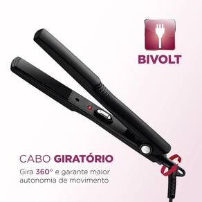 -Modelo: P-15 -Cor: Preto -Voltagem: Bivolt -Temperatura Máxima: 220ºC -Comprimento do Cabo: 1,50m -Peso: 230g -Chapas Cerâmicas Ionizadas -Cabo Giratório: Sim -Visor LCD: Não -Trava de Segurança: Não -Controle de Temperatura: Não -Garantia: 1 ano pelo fabricante