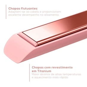 Desligamento automático Após 1h de uso, a prancha desliga automaticamente, garantindo mais segurança chapas flutuantes Adaptam-se ao cabelo e proporcionam um excelente desempenho no alisamento.