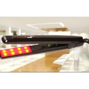 Infravermelho com aquecimento por ultrassom, permanecendo fria a placa de titanio para não agredir os cabelos com alta temperatura.