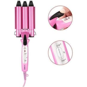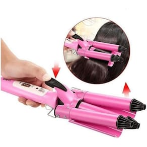 Prancha modelador cabelo ondulado cacheado tri-ondas rosa