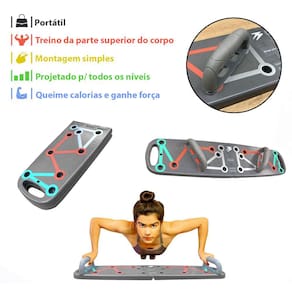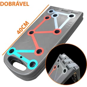#DESCRIÇÃO -Foco em múltiplos grupos musculares: Braços, peitoral, tríceps, ombros e costas. - Com múltiplas pegadas, você pode variar a largura das mãos para focar em diferentes áreas do peito, ombros e tríceps. -Design inteligente e ergonômico, com 80cm de comprimento promove uma postura correta durante o exercício, minimizando o risco de lesões e aumentando a efetividade do treino e oferece amplitude para uma variedade de exercícios. - Dobrável, ficando com 40cm facilitando o armazenamento e o transporte, tornando-a perfeita para manter sua rotina de exercícios em qualquer lugar. - Sua montagem é simples e rápida, permitindo que você inicie seu treino em poucos minutos após retirá-la da embalagem. - Com a estabilidade e a segurança garantidas pelo material de alta qualidade e pela superfície antiderrapante, você pode se exercitar com confiança. Desenvolva seus braços, peitoral, tríceps, ombros e costas de maneira eficiente e prática. Seja você um iniciante ou um atleta experiente, esta prancha oferece versatilidade e desempenho para atender às suas necessidades de treino. Além disso, sua estrutura robusta e durável garante segurança e estabilidade durante cada exercício.
