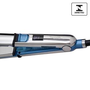 ela possui um led indicador de temperatura com 5 ajustes , então você pode escolher a temperatura adequada de acordo com a densidade de cada cabelo. Sistema de aquecimento em cerâmica dupla