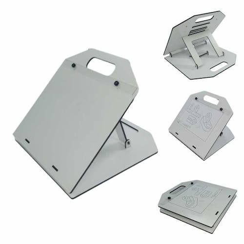 Prancheta portatil para desenho técncico modelo a4 articulada cor branca Fabricada em mdf de 6mm com tecnologia digital de corte a laser, a prancheta possui até 7 níveis de regulagem, se adequando a sua necessidade de estudo. Possui régua de acrilico e prendedores rosqueáveis de metal da régua na prancheta. Quando fechada se torna prática para ser carregada por conta de seu formato de maleta. Ideal para cursos de desenhos técnicos, arquitetura, construção civil, ou qualquer matéria que necessite de um material de qualidade e durável Tamanho aproximado: 35x35x5 cm largura x comprimento x altura fechada Regulagem de ângulos disponíveis aproximadas: 0º, 15º, 20º, 40º, 43º, 45º, 50º Marca fenix. Ean: 7898675516192