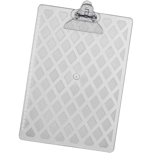 Prancheta Super Cristal é útil para diversas funções e profissões, auxiliando no apoio do papel e também na organização de folhas e fichas. A Prancheta Super é uma prancheta transparente, corpo com detalhes de losango e prendedor transparente. Prancha e prendedor injetados em poliestireno. Prática, bonita, moderna e resistente.