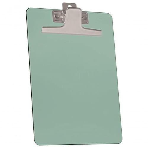 Prancheta ofício em poliestireno com prendedor metálico, livre de rebarbas. A prancheta possui um ótimo acabamento e é muito resistente. Possui uma régua lateral da prancheta, em centímetros.