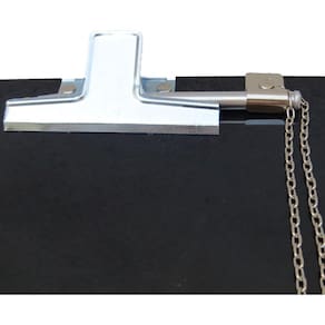 Prancheta tamanho ofício com prendedor metálico para facilitar na escrita e dar melhor acabamento ao seu trabalho.Especificação PranchetaMaterial: AcrílicoTamanho: OfícioPrendedor: MetálicoCor: Transparente ou Fumê (conforme disponível para seleção no momento da compra)Dimensões: 32 cm (comprimento) x 23 cm (largura)Especificação CanetasMaterial da base: chapa de ferro pintada ou cromadaCorrente de ferro dupla com banho de cromoTubo para caneta em alumínio polidoCor disponível da base da caneta: PrataComprimento da corrente: 50 cmTinta: AzulRefil: Compatível com refil de caneta BIC cristalINFORMAÇÕES IMPORTANTES:- A(s) cor (es) dos produtos podem sofrer variação de tonalidade, de acordo com a configuração do seu dispositivo ou monitor. - O prazo de entrega informado no anúncio é apenas uma previsão, podendo sofrer alterações na data de entrega informada no ato da compra por motivo de força maior.