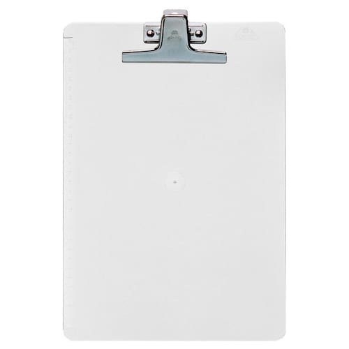 - Prancheta ofício em poliestireno com prendedor metálico, livre de rebarbas.