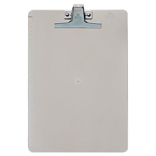 - Prancheta ofício em poliestireno com prendedor metálico, livre de rebarbas.