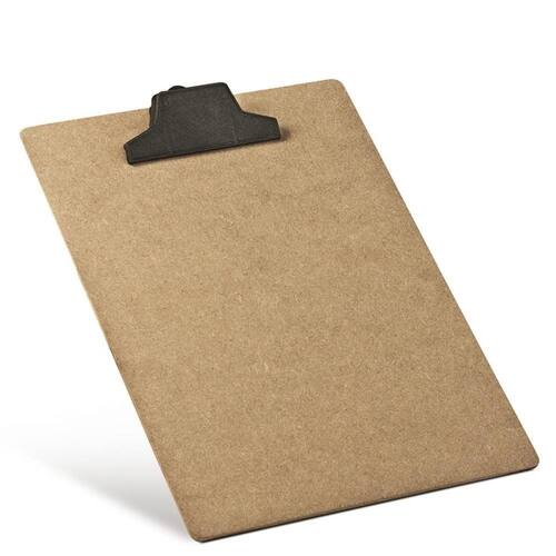 Prancheta em MDF tamanho A4/Ofício, com prendedor plástico.
