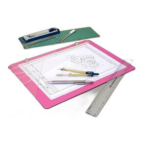 Prancheta em madeira tipo mdf com acabamento superficial pink medidas 35x25 cm aproximado. Indicadapara cursos de desenho técnico, engenharias, arquitetura, construção civil,entre outros. Possui prendedores rosqueáveis em metal e régua acrílica transparente.