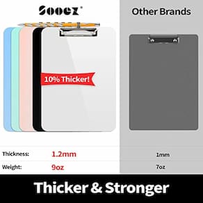 Preencha formulários em qualquer lugar usando esta prancheta de plástico tamanho carta da Sooez. Seu tamanho leve e compacto e sua superfície de escrita lisa facilitam o transporte e a anotação, seja na bolsa ou em qualquer lugar. Perfeito para trabalho, escola, casa ou férias.
