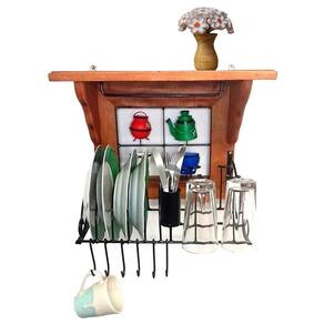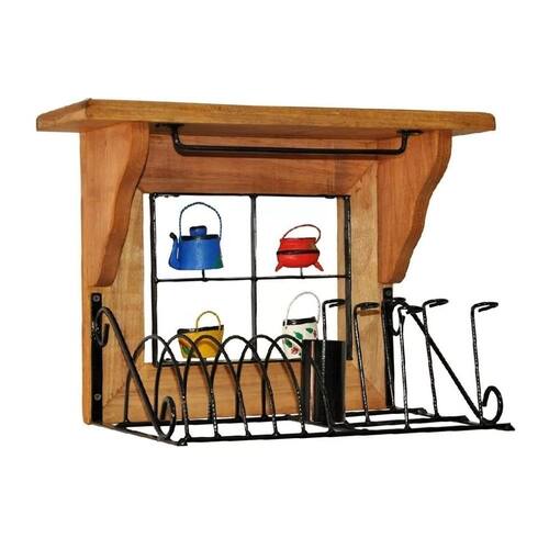 Prateiro escorredor de cozinha rústico de parede em ferro e madeira - porta pratos, copos, talheres, panos - tamanho 40 cm tn2511cf1.6
