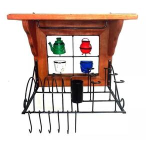 Peça artesanal, totalmente produzida à mão, com utilização de madeira de demolição mista e ferro com pintura eletrostática na cor preta, anti-ferrugens. Enfeites decorativos de madeira entalhados à mão com pintura artesanal. Chama atenção pelo seu excelente acabamento, mesclado à imponência de um produto rústico e artesanal, agregando ainda mais estilo em cada milímetro da confecção. Uma linda peça para a composição da decoração de sua cozinha