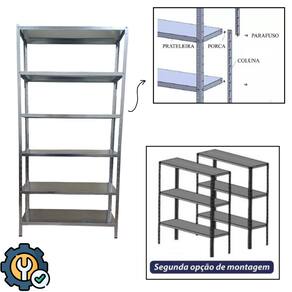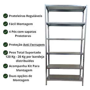 CARACTERISTICAS: *Fabricada em Chapa 0,50 mm *Peso máximo suportado 120 Kg - 20 Kg por bandeja *Proteção Anti Ferrugem *6 bandejas *Fácil Montagem *Acompanha Parafusos para montagem