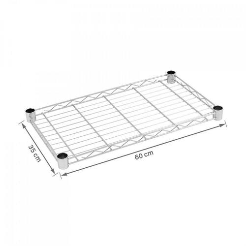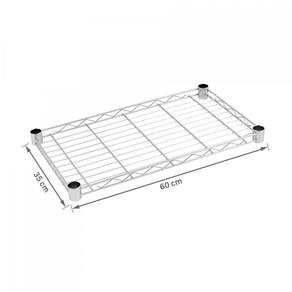 Este kit inclui uma prateleira do tipo aço aramado com dimensões de 60x35 cm, perfeita para acomodar diversos objetos. Também estão inclusos 4 jogos de presilhas para fixação nas hastes da estante, garantindo maior segurança e estabilidade.
