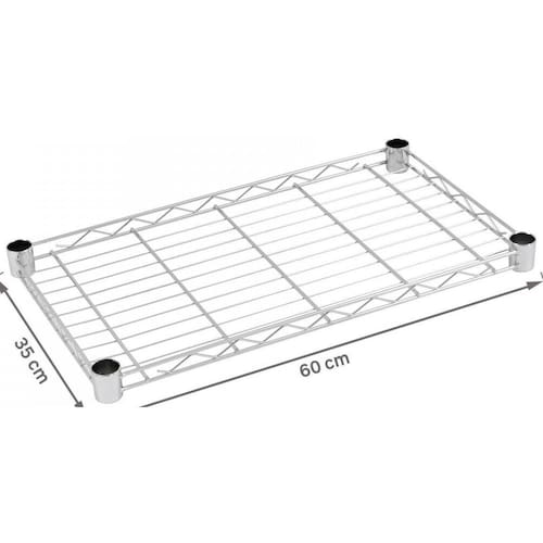 Este kit inclui uma prateleira do tipo aço aramado com dimensões de 60x35 cm, perfeita para acomodar diversos objetos. Também estão inclusos 4 jogos de presilhas para fixação nas hastes da estante, garantindo maior segurança e estabilidade.
