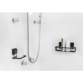 O Suporte de Shampoo com fixação por ventosas pode ser utilizado dentro do box com shampoos e condicionadores mas também próximo à pia do banheiro, com seus cremes hidratantes e demais itens de beleza. Sofisticação através do detalhe em aço Piatina (em formato achatado).