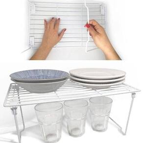 Deixe sua despensa ou armário organizado com essa prática divisória de prateleira.Feita em metal pintado de branco.Facil de usar, basta armar os pés e colocar onde desejar.Material: metal pintadoMedidas: 39,8 x 19 x 23 c x A x l cmContém: 1 Prateleira em Metal Dobrável Dolce Home