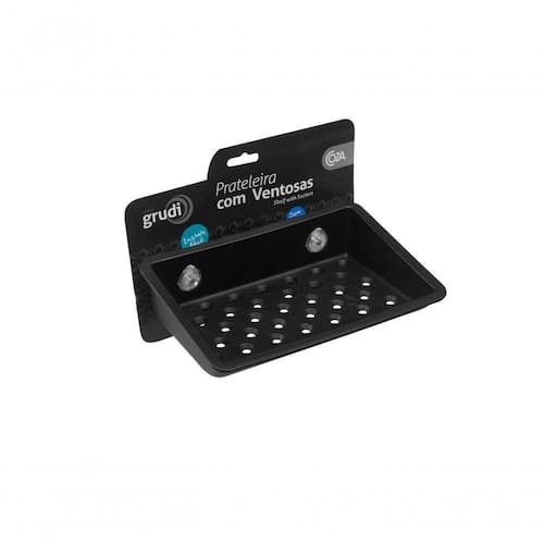 Prateleira Com Ventosas One 15,2 X 11 X 3,8 Cm Preto Coza Solução prática e eficiente para banheiros e lavanderias. As ventosas facilitam o processo de colocação, dispensando o uso de parafusos e outras ferramentas. Acomoda perfeitamente seus acessórios de banho podendo servir também para sabão e esponja. Material - Polipropileno Linha - Cestas Composição - 01 Prateleira Grudi Instruções de Uso -