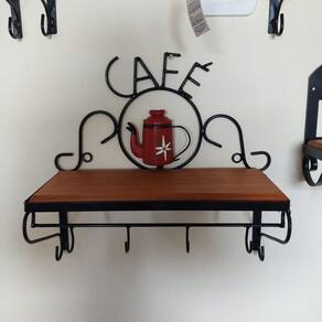 Feita para os amantes de um bom Café, esta prateleira artesanal é pratica, com 4 ganchos para xícaras e um suporte para colocar os ingredientes. Construída pelos melhores artesões, usando ferro com pintura eletrostática, não enferruja e madeira de demolição jequitibá, com uma estrutura reforçada, esta prateleira ira durar anos sem perder seu charme, mudando o ambiente de sua casa e surpreendendo suas visitas.