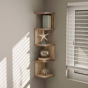 Prateleira de Canto Lyra 4 Nichos Decorativos Carvalho para Sala Quarto Livros - Bege