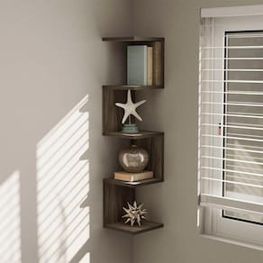 Prateleira de Canto Lyra 4 Nichos Decorativos Nogal para Sala Quarto Livros - Marrom