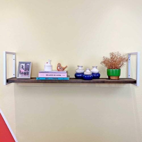Prateleira de Ferro e Madeira Industrial de Parede Style 1 Prateleira 120cm Tabaco e Branco -