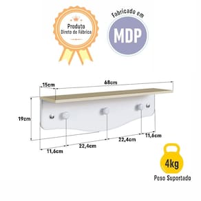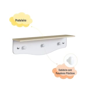 Transforme o quarto do seu bebê com a Prateleira Infantil Linha Encanto da Completa Móveis! Funcional e charmosa, ela combina organização e estilo, oferecendo um espaço ideal para acomodar brinquedos, livros e itens decorativos. Além disso, conta com 3 cabideiros para pendurar casacos, roupinhas e acessórios, mantendo tudo sempre à mão. Feita em MDP resistente com acabamento fosco, é perfeita para compor um ambiente aconchegante e organizado.
