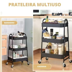 Qual é a capacidade de peso da prateleira?A prateleira suporta até 30 kg de prateleira possui rodinhas fixas ou giratórias?Ela possui rodinhas giratórias para facilitar o prateleira é resistente?Sim, é feita de metal resistente, garantindo é adequada para quais ambientes?É ideal para cozinhas, banheiros, escritórios, lavanderias, lojas e armazé prateleira é fácil de mover mesmo quando carregada?Sim, graças às rodinhas, ela é fácil de mover mesmo com objetos armazenados.