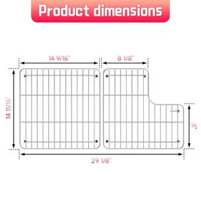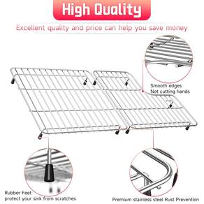 jkxoo Suporte de pia de 74 cm x 37 cm para fundo da pia para Kohler K-6639-ST Whitehaven e 6488 Protetores de pia de fazenda compatíveis, protetores de pia de aço inoxidável 304 kohler Farmhouse - Tamanho do produto: Dimensões do rack esquerdo: 14-11/40.6 cm x 14-9/40.6 cm, Dimensões do rack direito: 14-11/40.6 cm x 8-1/20.3 cm. Tamanho total: 29-1/8"x14-11/40.6 cm (inclui prateleiras esquerda e direita) Nota: Confirme se nosso protetor de pia se encaixa na sua pia antes de fazer um pedido - Modelo aplicável: cabe na tigela das pias de cozinha K-6488 e K-6489 - Materiais de alta qualidade: Feito de aço inoxidável 304 de grau alimentício, impermeável e à prova de ferrugem, durável e seguro. Os protetores de pia para pia de cozinha também possuem pés de borracha de proteção e amortecedores para proteger a superfície da pia de arranhões - Fácil de limpar: o rack de pia para a parte inferior da pia é muito fácil de limpar; você pode colocá-lo confortavelmente dentro da lava-louças ou lavá-lo à mão; Observação: deve remover os pés de borracha antes de colocar a grade da pia na máquina de lavar louça - Função: A grade da pia da cozinha pode ser aplicada em uma variedade de aplicações; pode ser aplicada não apenas como uma grade de pia de cozinha, mas também como um rack de resfriamento, escorredor de louça, prateleira de preparação/enxágue de alimentos, etc. ; Você pode enxaguar e drenar todos os vegetais e frutas nessas prateleiras; adicione ao seu carrinho agora, e então você terá um bom protetor de pia de metal para sua cozinha
