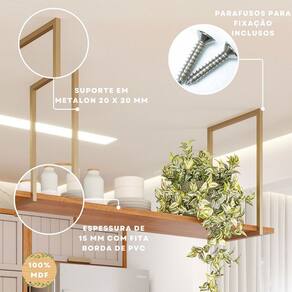 O(a) Prateleira Decorativa 125 Cm Gourmet Cinamomo - Mgm Móveis é produzido em MDF na escala de brilho Fosco, e possui um grau de dificuldade de montagem: Médio.