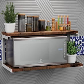 Suporte Cor: Branca Resistencia: até 70 kg Dimensão Prateleira Cima: 60cm x 20cm Dimensão Prateleira Baixo: 60cm x 20cm Distância entre prateleiras: 33cm