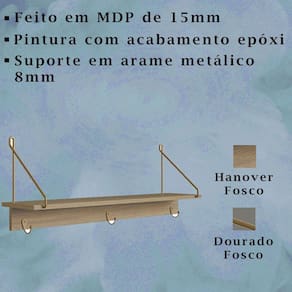 Prateleira Decorativa Tube Arttesano perfeito para o dia a dia, possibilita uma melhor organização. Produzido em MDP BP 15mm, suporte em arame metálico 8mm com acabamento em pintura epóxi, possui 3 ganchos metálicos acabamento em pintura fosca. Com design minimalista, remete em suas linhas retas a simplicidade, charme e funcionalidade que sua casa merece. Este produto chegará em sua casa separado em 01 volume.