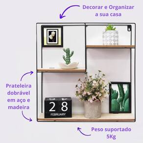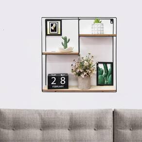 Prateleira em Aço Nicho Decorativo Enfeite de Parede Quadrada Cor: Preta Descrição