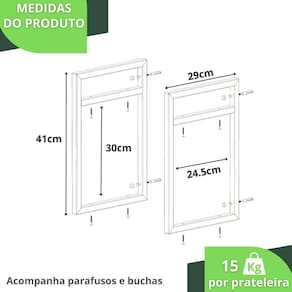 Medidas do nicho Comprimento: 80cm Altura: 41cm Profundidade: 29cm Distância entre as prateleiras: 30cm