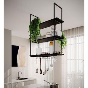 AS IMAGENS SÃO MERAMENTE ILUSTRATIVAS E PODEM SOFRER VARIAÇÕES DE COR E PEQUENOS DETALHES DE ACORDO COM O SEU MONITOR, ILUMINAÇÃO DO AMBIENTE E ATÉ MESMO A SUA PERCEPÇÃO VISUAL.Prateleira Estilo Industrial Suspensa Teto Cozinha Nicho Denver 80cm - Preto
