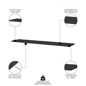A Prateleira Flutuante Para Banheiro com Suporte Invisível 68x20cm Yara Preto, da Lumil é uma ótima solução para deixar o espaço arrumado, além de valorizar o ambiente.